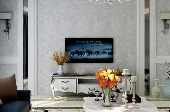 白色沙發(fā),白色墻體,淺色地板,整個(gè)空間給人的感受是很干凈清新,沒(méi)有過(guò)多的潤(rùn)飾,不需求華麗的色彩,如果在某個(gè)空間里突兀的呈現(xiàn)一塊色彩艷麗的裝修圖,那么看起來(lái)很突兀,不是很搭調(diào),所以,這兒的電視墻很巧妙的運(yùn)用和灰色藝術(shù)涂料,效果一下從視覺(jué)上得以提升。